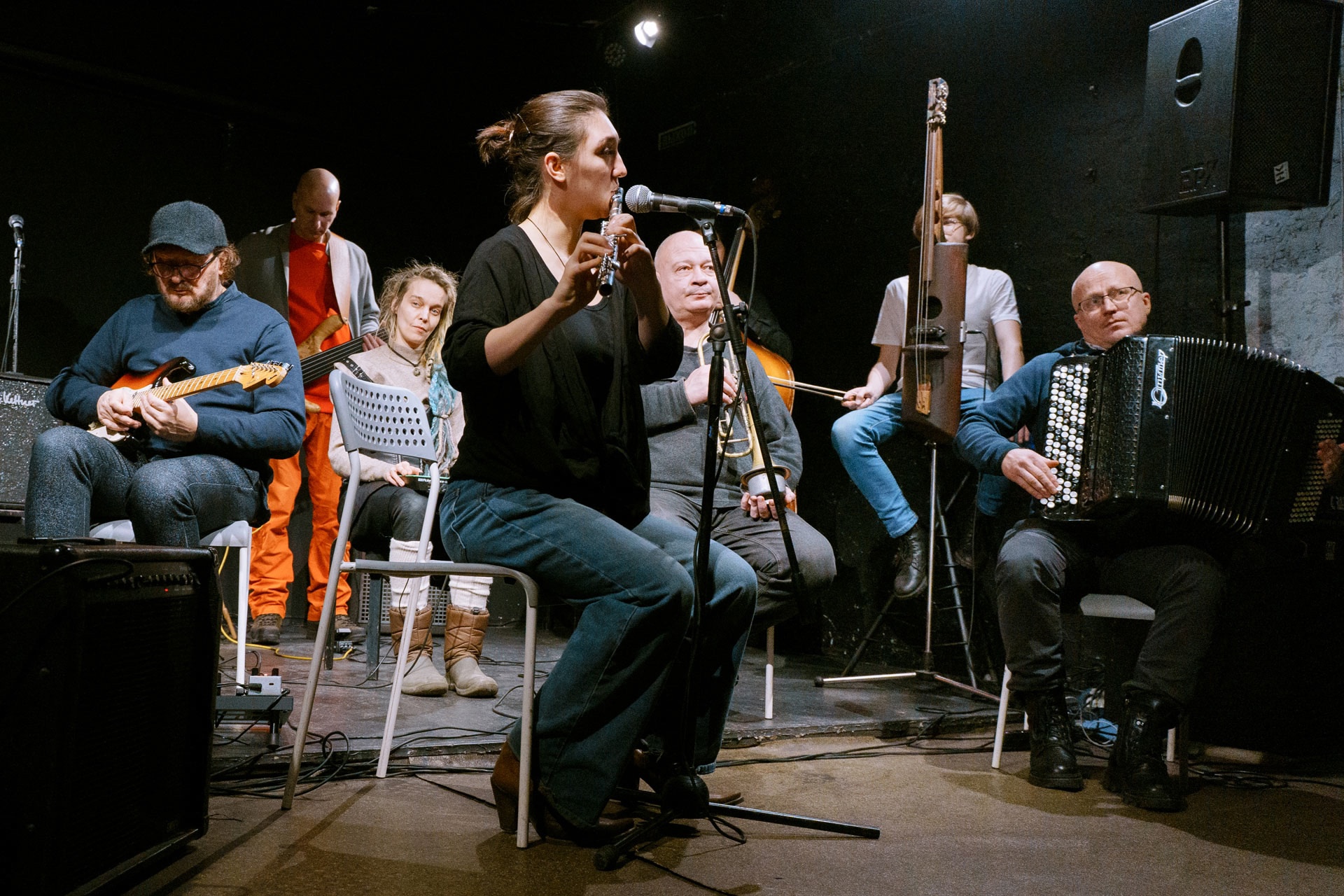 Оркестр первый российский коллектив, начавший использовать систему дирижируемой импровизации. Музыканты подобных оркестров импровизируют, но в то же время это и дирижируемая коллективная игра с использованием специально разработанной системе знаков-жестов. Музыканты используют не только классические инструменты в ход идут куски железа, смартфоны, самодельные инструменты, карманные синтезаторы и вообще все, что способно издавать звук.